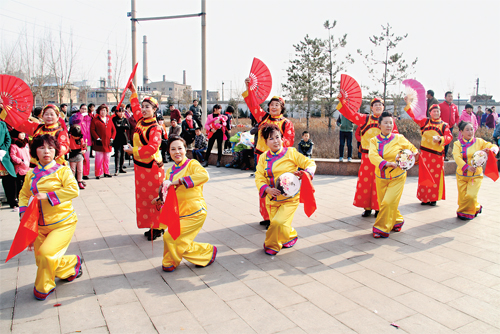 3月8日,原平市北城街道城西社區(qū)舉辦了為“冬季行動喝彩”歌舞聯(lián)歡。該市各支舞蹈隊匯集該社區(qū)活動中心,表演了她們的拿手節(jié)目?;顒蝇F(xiàn)場,豐富多變的造型、神采飛揚的舞姿,充分展示了原平市勞動婦女的風采。圖為社區(qū)舞蹈隊正在演出《“冬季行動”就是好》節(jié)目。(褚震 攝)
