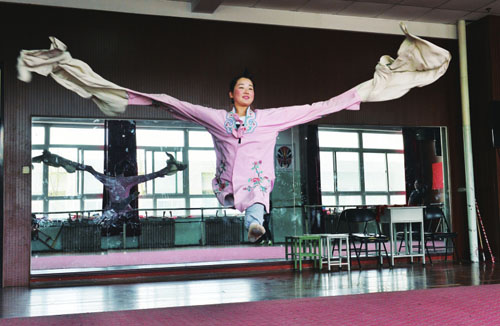就是這個(gè)瀕臨消亡的劇種,卻仍有人在不懈地堅(jiān)持傳承著。太雨琴,一位22歲的忻州女孩,堅(jiān)持學(xué)習(xí)并演出北路梆子已經(jīng)10年之久了。她13歲時(shí)開始學(xué)習(xí)戲曲,憑借精湛的技藝,獲得了第十五屆全國少兒戲曲小梅花金獎(jiǎng)。她被北路梆子這個(gè)非遺劇種深深吸引著,唱、念、做、打,不知不覺中10年的光陰在練功房中度過。