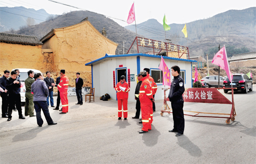 4月6日,代縣灘上鎮(zhèn)防火檢查站消防人員正在對(duì)進(jìn)入山區(qū)的人員、車輛進(jìn)行護(hù)林防火安全檢查。立春以來,代縣縣委、縣政府大抓護(hù)林防火工作,各鄉(xiāng)鎮(zhèn)實(shí)行鄉(xiāng)鎮(zhèn)干部包村、包片責(zé)任制,組建了30—50人的護(hù)林防火突擊隊(duì),在通往山區(qū)、林區(qū)的各個(gè)交通要道設(shè)立護(hù)林防火檢查站,對(duì)過往車輛、人員進(jìn)行護(hù)林防火安全檢查和護(hù)林防火宣傳教育。(楊繼興 攝)