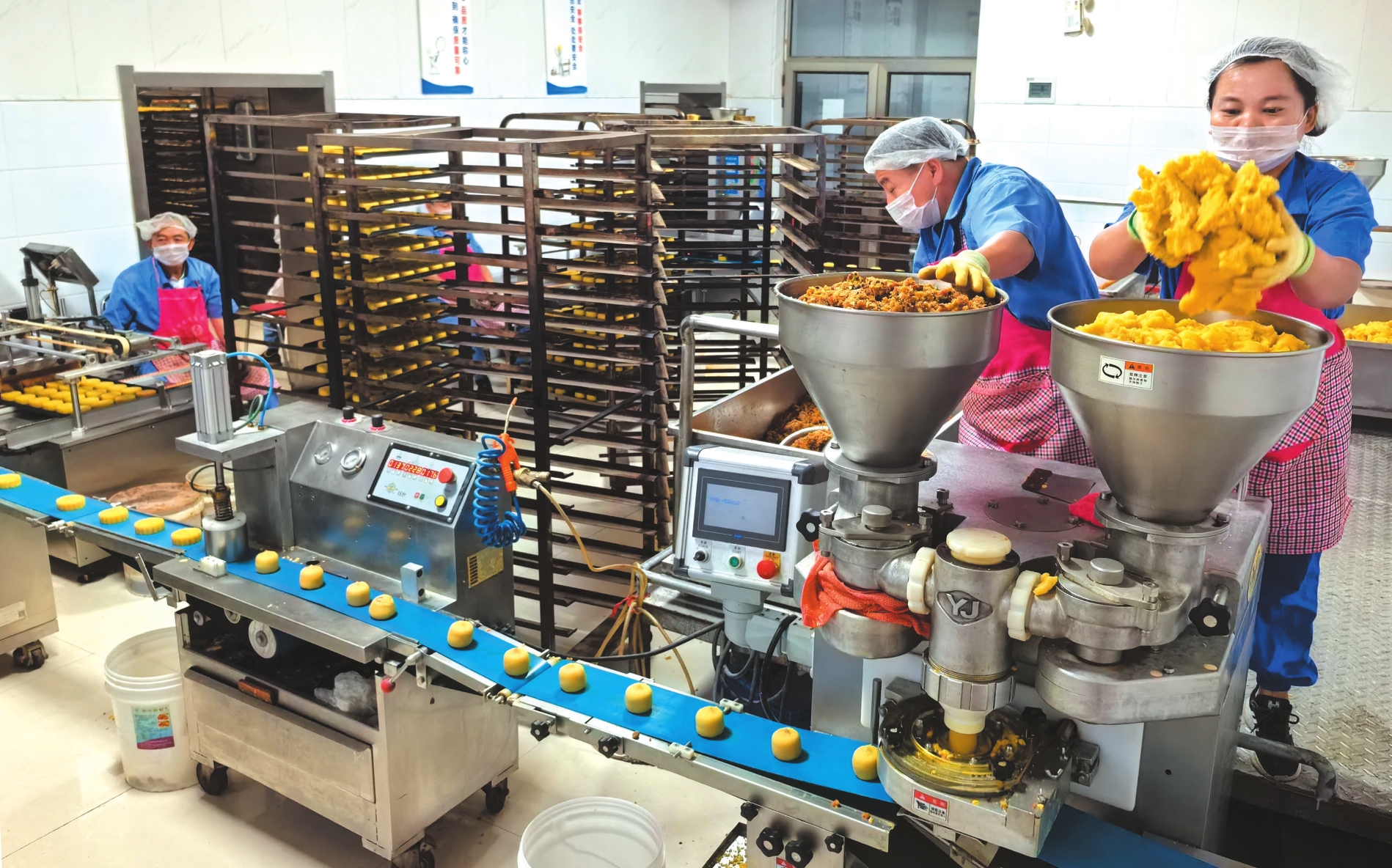 中秋節(jié)臨近,被譽為“中國北方月餅之鄉(xiāng)”的神池縣迎來月餅產(chǎn)銷旺季。近日,當?shù)卦嘛炆a(chǎn)企業(yè)開足馬力,加緊生產(chǎn),以保障節(jié)日市場供應。(鄭志東攝)