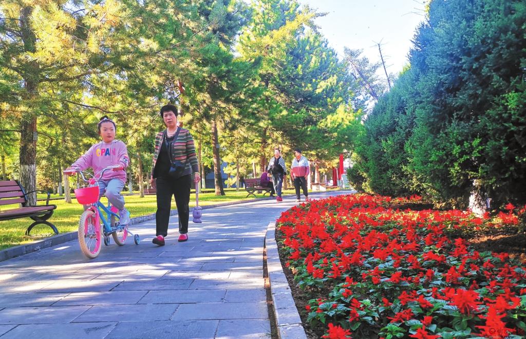 秋意漸濃,忻州市人民公園層林盡染,吸引眾多市民游客前來賞景。(