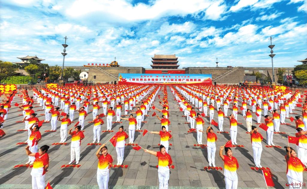 9月26日,來(lái)自全市14個(gè)縣(市、區(qū))代表隊(duì)的近千名舞者齊聚忻州古城,伴隨著配樂(lè)《鞭花舞出幸福歌》的激揚(yáng)曲調(diào),共同演繹霸王鞭廣場(chǎng)舞,并齊聲合唱《歌唱祖國(guó)》,為即將到來(lái)的國(guó)慶節(jié)獻(xiàn)禮。活動(dòng)中,演員們整齊劃一的動(dòng)作、昂揚(yáng)向上的精神風(fēng)貌,生動(dòng)展現(xiàn)了對(duì)美好生活的向往,得到了廣泛好評(píng)。常麗琴攝