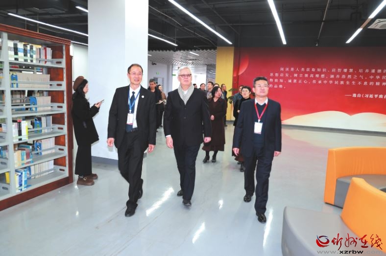 11月11日,2025年山西省高校圖書館年會在忻州師范學院召開。圖為與會嘉賓參觀忻州師范學院圖書館。