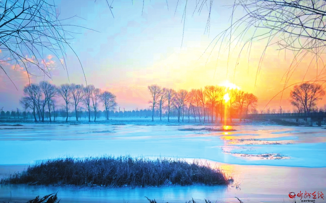 牧馬河公園的雪,則是城市里的小確幸。柳樹的枝條裹著雪,像銀條般垂落。湖面結(jié)著薄冰,倒映著岸邊的雪樹,一派祥和景象。老人們在雪后的小徑上散步,孩子們追跑打鬧,堆起憨態(tài)可掬的雪人,偶爾傳來的歡笑聲,讓整個公園都充滿了生機(jī)。