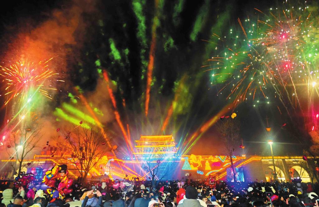 2026年元旦之夜,忻州古城跨年活動(dòng)高潮迭起,精彩紛呈。當(dāng)新年的鐘聲敲響,萬(wàn)千心愿氣球同時(shí)升空,煙花與星辰共舞,歌聲飛揚(yáng),光影如瀑,八方游客一起迎接新年到來(lái)。(王林俊攝)