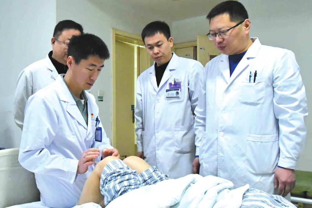 我市與山西醫(yī)科大學(xué)第一醫(yī)院簽署合作共建忻州市人民醫(yī)院框架協(xié)議以來(lái),省級(jí)專家下沉坐診已成常態(tài)。圖為山西醫(yī)科大學(xué)第一醫(yī)院常駐專家、骨科主任韓永斌在市人民醫(yī)院骨科病房查看患者腿部術(shù)后情況。(李潤(rùn)攝)