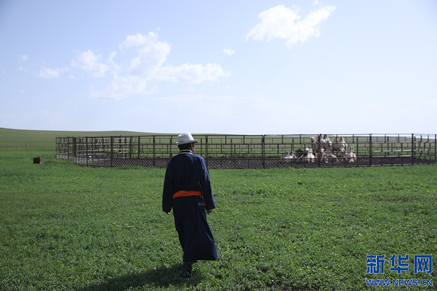8月2日,其日麥拉圖在自家草場查看駱駝的喂養(yǎng)情況。新華網(wǎng)記者 焦鵬攝 “山水草木都有靈魂,要愛護(hù)自然,要愛護(hù)長生天賦予我們的一切?!备赣H從小給予的教誨,其日麥拉圖一直銘記在心,并且付諸行動。 1987年,其日麥拉圖加入黨組織,1995年起連續(xù)八年擔(dān)任海拉圖嘎査書記。八年間,其日麥拉圖為守護(hù)草原不被風(fēng)沙侵蝕,帶領(lǐng)嘎查牧民在中俄邊境線上種下一片楊樹林,為草原拉起一道防風(fēng)固沙的有力防線。如今,那里已長成一片繁盛的林地,也成了廣袤草原上一處美麗的風(fēng)景。 在其日麥拉圖眼里,60年來,哺育自己的這片草原一如從前豐美,但牧民們的生產(chǎn)生活方式發(fā)生了很大的變化。