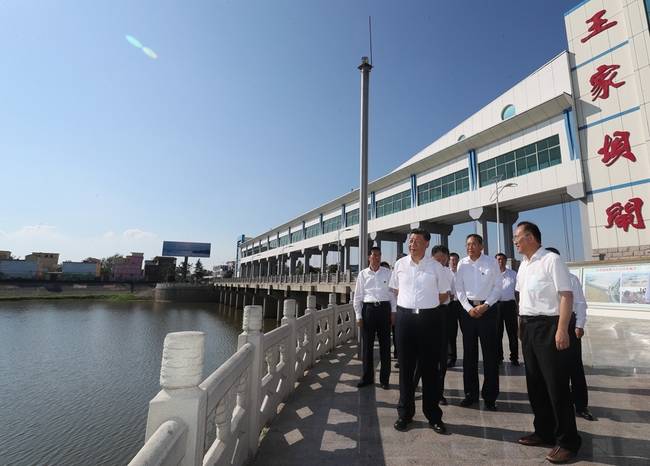 習(xí)近平來(lái)到阜陽(yáng)市阜南縣王家壩閘 攝影:新華社記者鞠鵬 王曄