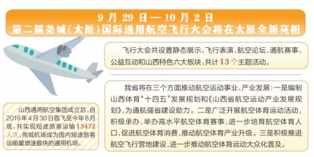 結(jié)合我省實際,本屆飛行大會共設(shè)置靜態(tài)展示、飛行表演、航空論壇、通航賽事、公益互動和山西特色六大板塊,共計13個主題活動。