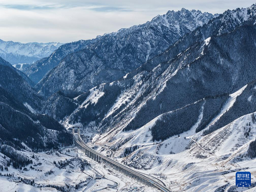 這是新疆烏尉高速公路前峽1號(hào)隧道及附近路段(12月20日攝,無人機(jī)照片)。(新華社記者 胡虎虎 攝)
