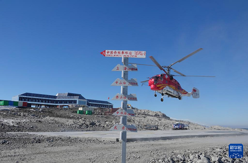 12月29日,“雪鷹102”直升機在秦嶺站降落。(新華社記者 顧天成 攝)