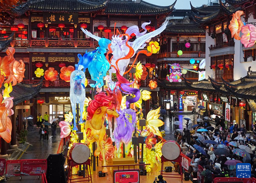 1月26日,游客在豫園燈會(huì)上賞燈。(新華社記者 劉穎 攝)