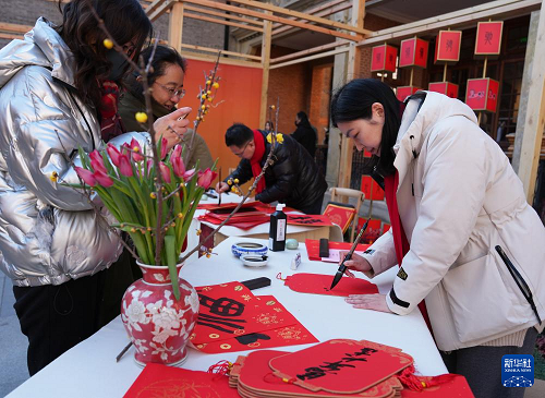 2月8日,書法家們在游園會上為市民寫春聯和福字。(新華社記者 劉穎 攝)