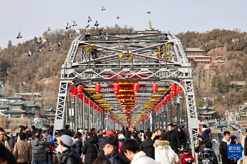 2月9日,人們在蘭州市城關(guān)區(qū)中山橋上游覽。(新華社發(fā) 侯崇慧 攝)
