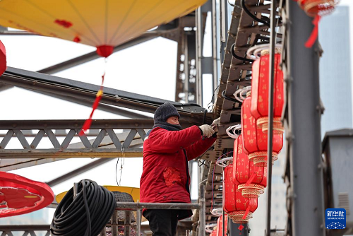 | 甘肅蘭州:黃河百年鐵橋 燈籠高掛迎新 |
