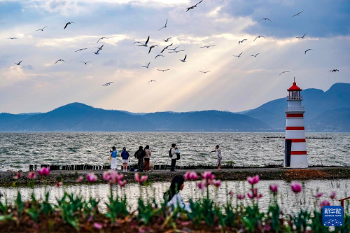春日暖陽(yáng)下,昆明滇池碧波蕩漾,遠(yuǎn)山如黛,紅嘴鷗翩躚起舞。游人沿岸漫步、駐足拍攝,共繪出一幅生動(dòng)宜人的春游畫卷。