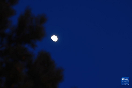 2月27日在黑龍江省大興安嶺地區(qū)加格達(dá)奇區(qū)拍攝的木星伴月。(新華社發(fā) 莊宇 攝)