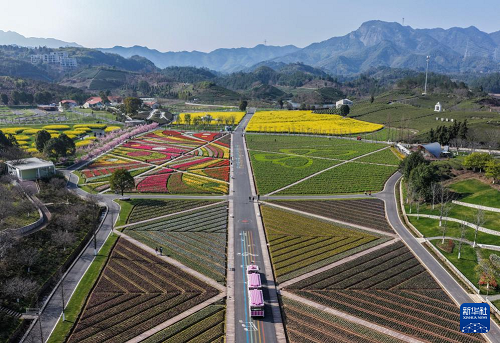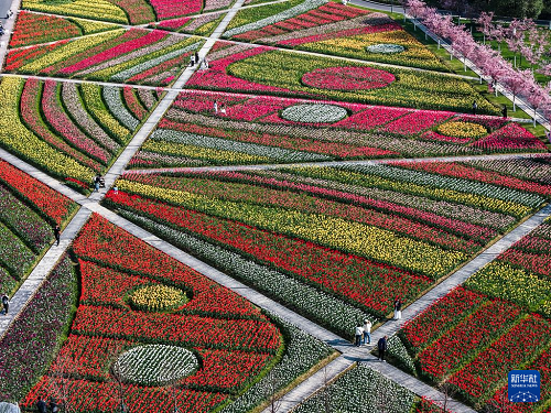 空中俯瞰花田美地景區(qū)(3月10日攝,無人機(jī)照片)。(新華社記者 徐昱 攝)