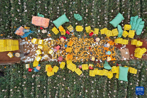 3月12日,農(nóng)民在??诖笃骆?zhèn)將鳳梨打包裝箱(無人機(jī)照片)。(新華社記者 郭程 攝)
