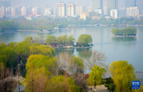 3月17日拍攝的大明湖風(fēng)光。(新華社記者 徐速繪 攝)