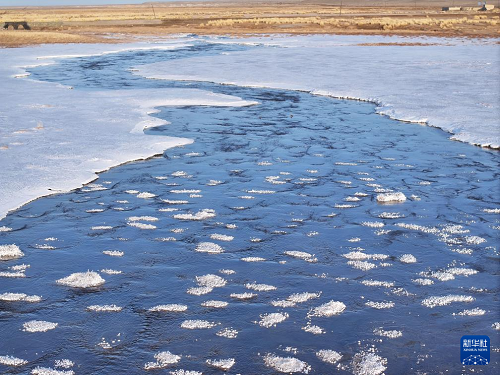 這是3月19日在甘肅省阿克塞哈薩克族自治縣阿勒騰鄉(xiāng)哈爾騰村拍攝的哈爾騰河一景(無人機照片)。(新華社發(fā) 高宏善 攝)