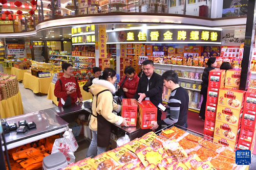 在廣西柳州市青云民生市場(chǎng)一家特產(chǎn)超市,游客在選購(gòu)螺螄粉(2026年3月10日攝)。(新華社記者 黃孝邦 攝)