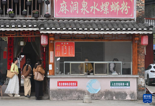 游客在廣西融水苗族自治縣融水鎮(zhèn)新國(guó)村一家螺螄粉店排隊(duì)購(gòu)買(mǎi)螺螄粉(2026年3月7日攝)。(新華社記者 黃孝邦 攝)