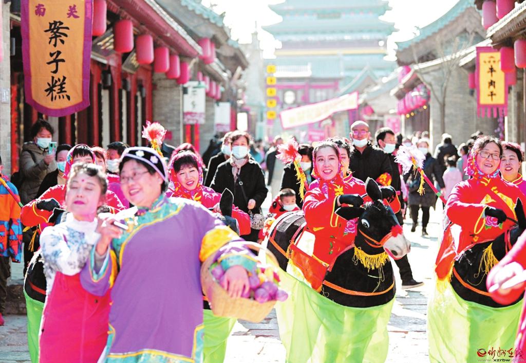 2月17日,忻州古城,民間文藝表演隊正在街頭巡演。春節(jié)期間,忻州古城舉辦“逛古城、品文化、識忻州”旅游文化活動,雄獅起舞、八音吹奏、秧歌表演等一系列富有當(dāng)?shù)靥厣拿耖g文藝活動精彩紛呈,吸引了眾多旅游者游覽觀賞,整個古城呈現(xiàn)出一派喜慶祥和的節(jié)日氣氛。 (李兆民 攝)