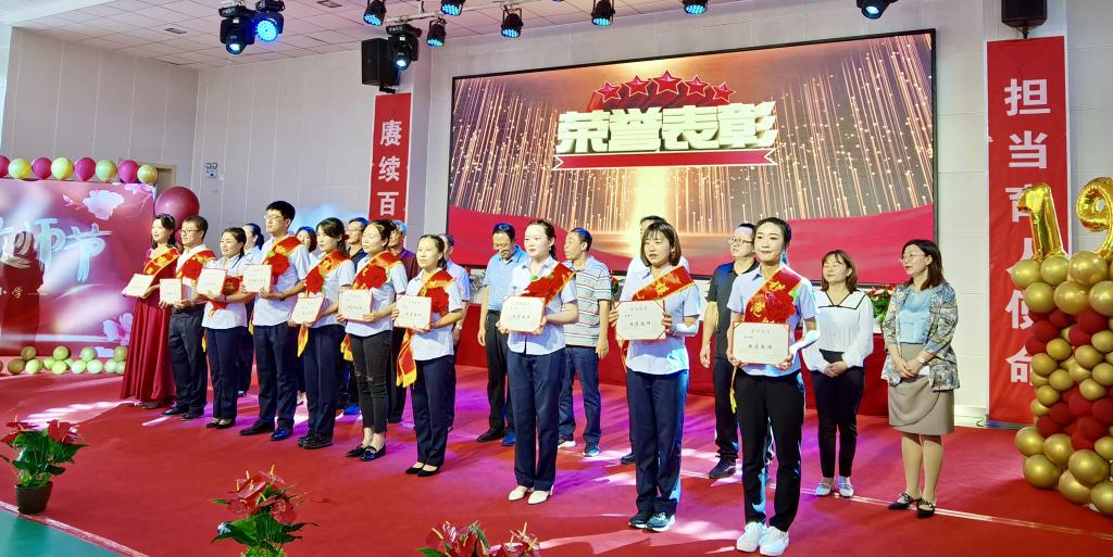 活動(dòng)現(xiàn)場(chǎng),學(xué)校對(duì)14名優(yōu)秀教師進(jìn)行了表彰,其中1名為優(yōu)秀教育工作者,8名為模范教師,5名為模范班主任。通過表彰先進(jìn),鼓勵(lì)老師們?cè)俳釉賲枺^續(xù)發(fā)揮愛崗敬業(yè)、立德樹人,三尺講臺(tái)育英才的精神,為下一代成長(zhǎng)教育發(fā)揮更大的作用。