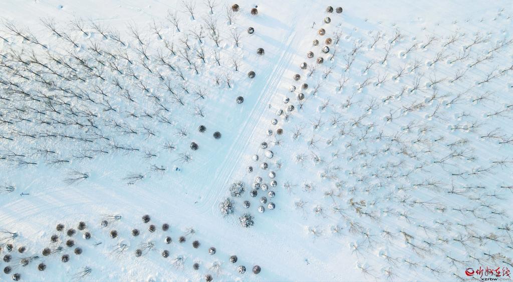 雪后的牧馬河生態(tài)公園,在白雪的覆蓋下,若隱若現(xiàn),美不勝收。(