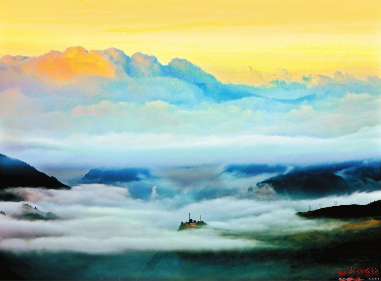 站在高山之巔,徐徐浮動(dòng)、漫無邊際的云遙掛在山水間,柔潤(rùn)似水、渾然天成,變幻莫測(cè)、瑰麗壯觀。