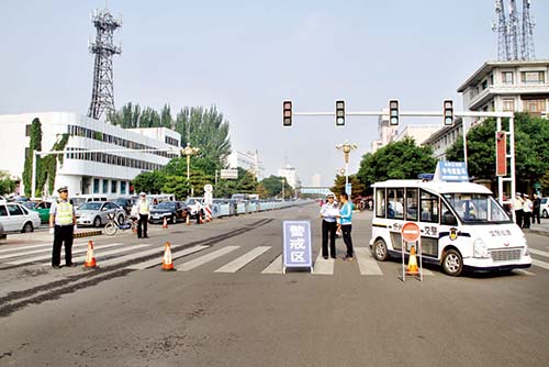 本報(bào)訊(記者王國(guó)棟)我市2016年高中階段教育學(xué)校招生統(tǒng)一考試于6月20、21、22日如期進(jìn)行。我市公安交警為了切實(shí)做好中考期間全市道路交通安全保障工作,為考生營(yíng)造優(yōu)良交通環(huán)境,提供優(yōu)質(zhì)高效服務(wù),提前做好預(yù)案,部署警力,加強(qiáng)路面管控,在各考點(diǎn)的主要路段實(shí)施臨時(shí)交通管制,提高道路通行率,為廣大考生安全赴考創(chuàng)造良好的道路交通環(huán)境。