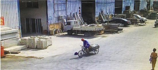直到上午8點(diǎn)50分左右,一名騎著三輪車的男子經(jīng)過(guò)這里,下車查看后把包撿走了?!八┲{(lán)色的工作服,戴著個(gè)紅色的安全帽,把包打開(kāi)看了下,然后就撿起來(lái)放到了車上?!?/p>