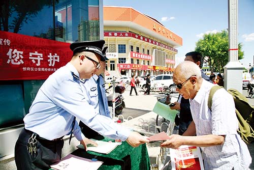 本報(bào)訊 5月15日上午,忻府區(qū)公安局在七一北路體育廣場(chǎng)警務(wù)室門前開展了以“與民同心、為您守護(hù)”為主題的打擊和防范經(jīng)濟(jì)犯罪宣傳日活動(dòng),受到市民群眾的歡迎。