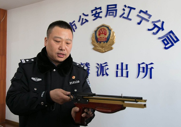 辦案民警介紹弩的殺傷力及給公共安全帶來的危害。寧公宣攝