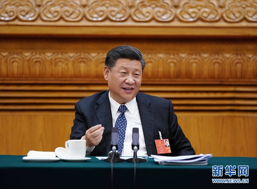 5月24日,中共中央總書記、國家主席、中央軍委主席習近平參加十三屆全國人大三次會議湖北代表團的審議。 新華社記者 李學仁 攝