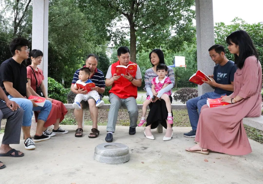 7月4日,浙江省長興縣小浦鎮(zhèn)中山村,黨員志愿者為村民宣講民法典 徐昱/攝
