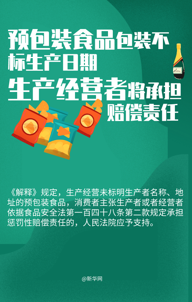 針對上述情況,《解釋》規(guī)定,生產(chǎn)經(jīng)營未清晰標(biāo)明生產(chǎn)日期、保質(zhì)期的預(yù)包裝食品,消費(fèi)者主張生產(chǎn)者或者經(jīng)營者依據(jù)食品安全法第148條第2款規(guī)定承擔(dān)懲罰性賠償責(zé)任的,人民法院應(yīng)予支持。因此,生產(chǎn)經(jīng)營的預(yù)包裝食品包裝標(biāo)簽未標(biāo)明生產(chǎn)日期、保質(zhì)期,或者標(biāo)明的生產(chǎn)日期、保質(zhì)期不清晰,生產(chǎn)經(jīng)營者都將承擔(dān)懲罰性賠償責(zé)任,以充分保護(hù)消費(fèi)者的知情權(quán)和生命健康。
