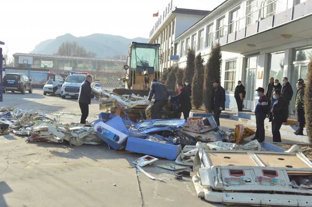 為鞏固掃黑除惡專項(xiàng)斗爭成果,徹底鏟除黑惡勢力經(jīng)濟(jì)基礎(chǔ),1月19日,岢嵐法院執(zhí)行局依法對韓某某等8人涉黑刑事案件罰沒財產(chǎn)——64臺賭博機(jī)進(jìn)行了集中銷毀。
