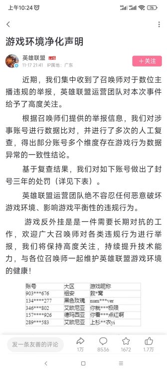 近日,英雄聯(lián)盟主播被質(zhì)疑使用腳本鬧得沸沸揚揚。在經(jīng)歷網(wǎng)友錄屏鑒定、主播自證辯解后,英雄聯(lián)盟官方下場,通過技術(shù)手段多重復(fù)查,幾位大主播求錘得錘終于被封號三年,大快人心。