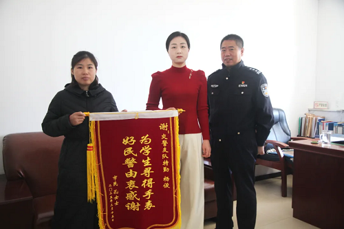2025年3月15日,忻州市公安局交警支隊(duì)特勤大隊(duì)楊俊同志在利民三巷和氣象北巷路口附近撿到一塊學(xué)生手表,并積極耐心地想辦法與失主監(jiān)護(hù)人取得了聯(lián)系。因工作原因無(wú)法長(zhǎng)時(shí)間在原地等待,便將手表交由附近公廁的環(huán)衛(wèi)工人妥善保管,最終順利物歸原主。兩日后,失主監(jiān)護(hù)人來(lái)到交警支隊(duì),送上一面印有“為學(xué)生尋得手表,好民警由衷感謝”字樣的錦旗以表謝意。