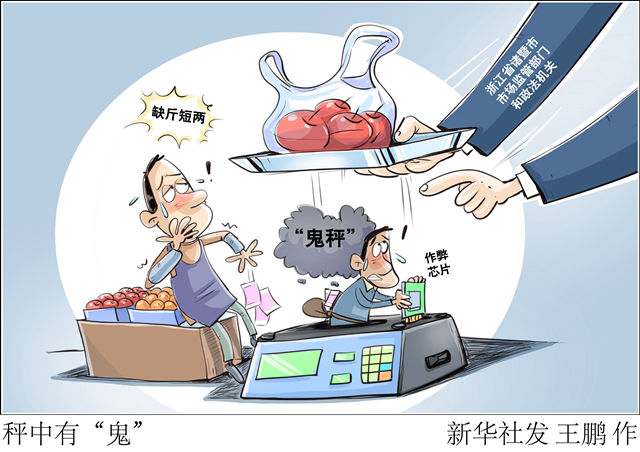 一臺(tái)小小的“鬼秤”,不僅侵害群眾合法權(quán)益,更有損公平誠(chéng)信的市場(chǎng)環(huán)境。執(zhí)法部門要主動(dòng)作為,為公序良俗撐腰,讓群眾利益得到保障;另一方面,遭遇缺斤短兩問題,消費(fèi)者也不要忍氣吞聲,多和不法現(xiàn)象“較真”:買完菜上“安心秤”復(fù)稱一下,對(duì)不法行為堅(jiān)決舉報(bào)。大家合力,一起讓“鬼秤”無處遁形。