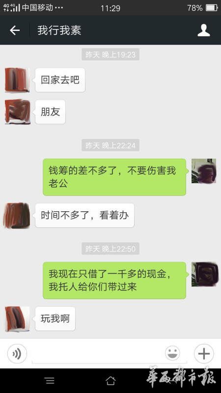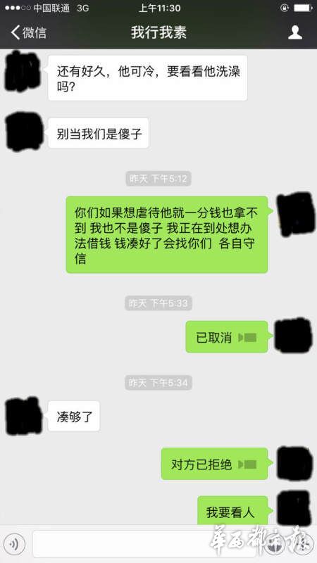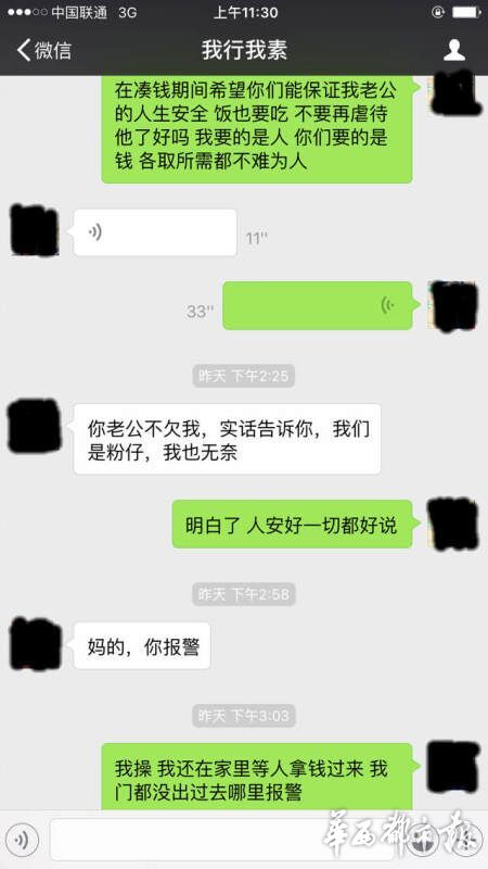 趙婷用微信與丈夫聯系,回復的人卻變成了“綁匪”,索要6萬元的贖金,否則撕票。趙婷說,一定會湊錢,但要保證王江的人生安全,不能虐待,各取所需都不為難人,“綁匪”卻一直逼問著錢的下落,并煞有其事地強調“不要報警”。