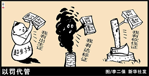 長期以來,一些部門熱衷以罰代管,甚至給罰款定指標(biāo),導(dǎo)致監(jiān)管出現(xiàn)不同程度的混亂。比如對一些該給予整改關(guān)停的違法經(jīng)營活動(dòng),以罰了事,這不僅使得有關(guān)危害得不到遏制,還讓相關(guān)市場主體產(chǎn)生“罰了就沒事了”的錯(cuò)覺。在以罰為主的思維下,一些企業(yè)基于違法成本遠(yuǎn)低于非法暴利的算盤寧肯“長期受罰”,而少數(shù)執(zhí)法部門則動(dòng)起了“養(yǎng)魚執(zhí)法”的心思。