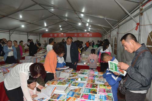 近日,定襄縣金鼎廣場(chǎng)的圖書展銷受到廣大群眾的熱烈歡迎,主辦方專門設(shè)置了閱覽區(qū),群眾不僅能享受圖書折扣,還能免費(fèi)閱覽所有圖書。此次活動(dòng)是定襄縣“我的中國夢(mèng),書香飄萬家”全民閱讀推廣主題活動(dòng)之一,為期15天。圖為5月12日,群眾在書展上購書閱讀。(劉小苗)