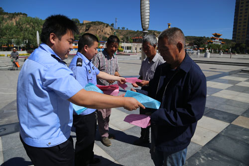 6 月24日,靜樂縣公安局在該縣街頭多處設(shè)點開展禁毒宣傳活動,通過掛橫幅、立展板、發(fā)放宣傳資料、現(xiàn)場解答群眾咨詢等方式大力宣傳毒品的危害性?;顒赢?dāng)日,共發(fā)放禁毒宣傳資料3500 余份,擴大了禁毒宣傳覆蓋面,使廣大群眾自覺抵制毒品危害的意識進一步得到了提高。(李敏 攝)
