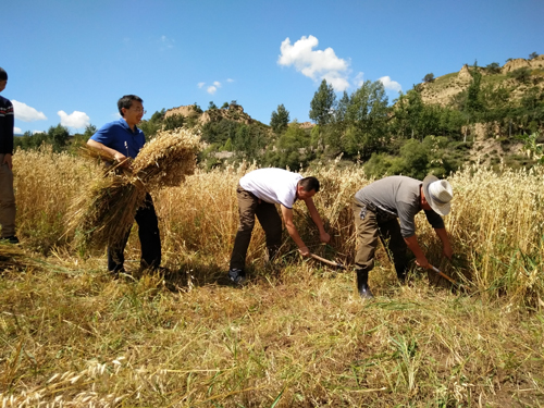 秋高氣爽,碩果累累。進(jìn)入農(nóng)忙時(shí)節(jié),寧武縣的第一書(shū)記們,自發(fā)地深入到田間地頭,和農(nóng)民一起勞作,享受收獲的喜悅。圖為第一書(shū)記們正在幫農(nóng)民收割莜麥。(陳玲)