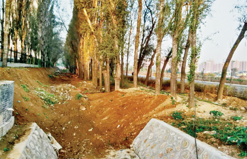 學府西街是忻州今年城市基礎(chǔ)設(shè)施建設(shè)完成的30條街道之一,通車的新路方便了附近市民及盧野村民的出行。但與這條新修道路相伴、路南的污水渠被市民稱作鬧市區(qū)的“龍須溝”,各種垃圾遍地、附近養(yǎng)豬場排出的糞便使污水橫流、臭氣熏天。市民們曾通過微信朋友圈呼吁進行整治。