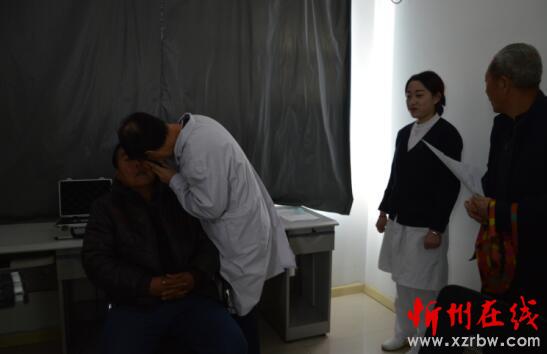 醫(yī)務(wù)人員正在為退休環(huán)衛(wèi)工人做眼底檢查。