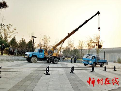 11月15日,記者在城區(qū)忻州西站廣場看到,工人們在移栽樹木。自我市城區(qū)創(chuàng)建省級園林城市以來,城區(qū)的“綠色”在不斷增多,現在雖已入冬,但在土壤上凍前,正是移栽桃樹的合適時機,移栽的桃樹成活后,來年便是一幅春暖桃花開的美好圖景。(實習記者 許凈 攝)
